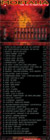 neuen Taten widmen wird. "wir haben in diesem musikalischen Rahmen alles ausgereizt und sahen keine Möglichkeit der Band musikalisch nochmal frischen Wind einzuhauchen oder vorangegangene Alben zu toppen. Anstatt uns nun verzweifelt selber zu kopieren, haben wir lieber einen Schlussstrich gezogen, auch wenn´s weh tut." hört man aus dem Lager der Death Rocker. Da die alten Scheiben teilweise gar nicht mehr erhältlich sind, steht seitens Moonstorm die Idee, einige ältere Songs in Zukunft nocheinmal zu veröffentlichen. 1994 MC Demo Release "forsaken dreams" 1996 CD Release "blood is life" auf We Bite Records 1997 CD Release (weltweit) "from the ground" auf Nuclear Blast Records 1997 EU Tour mit Unleashed 1998 CD Release (weltweit) "heads will roll" auf Nuclear Blast Records 1998 Mini Tour mit Hypocrisy 1998 EU Tour mit Death und Benediction 1998 EU Tour mit Dismember 1998 Festival Auftritt Wacken Open Air 2000 CD Release "dead end run" auf Moonstorm Records 2001 D Tour mit Pro-Pain 2001 Festival Auftritt With Full Force 2002 CD Release "buttoxim´ bloom" auf Moonstorm Records 2002 EU Tour mit Pro-Pain |